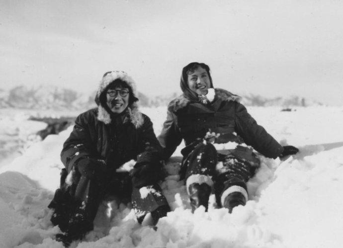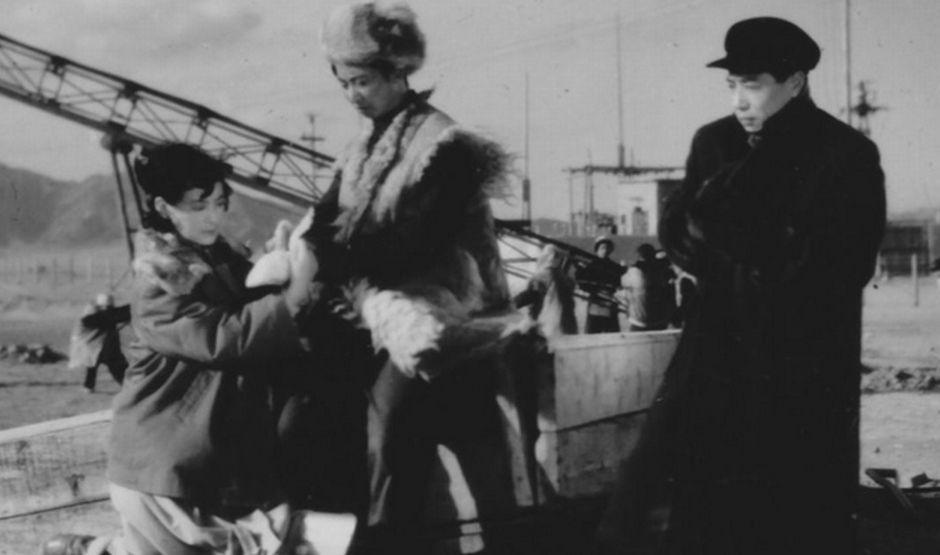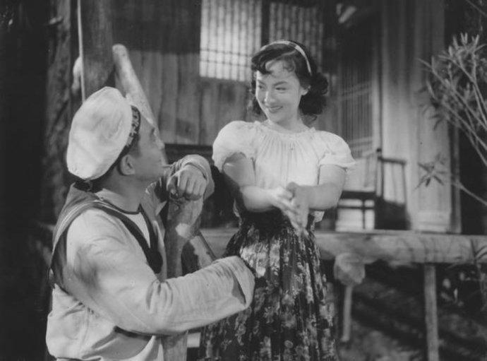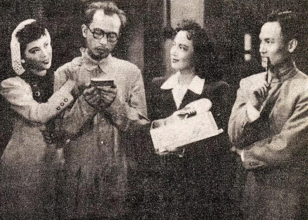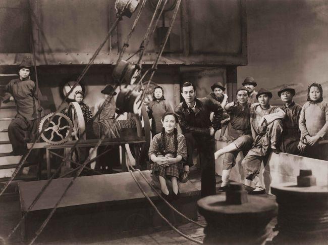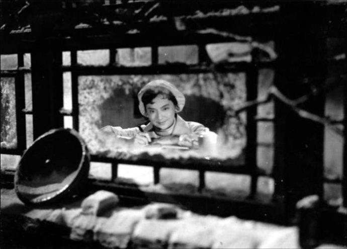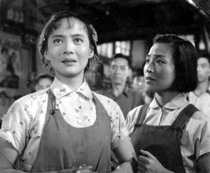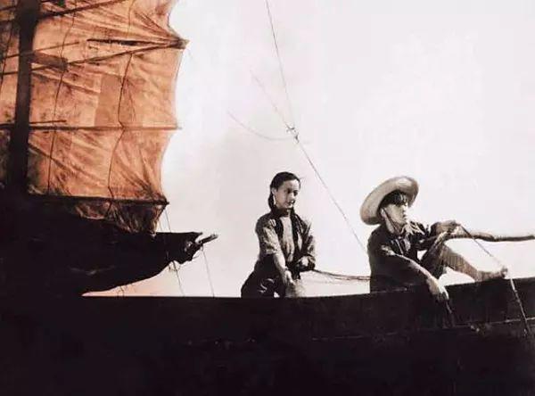 1941年,屠光启导演作品《新渔光曲》剧照,王丹凤在片中主演渔家女;右为演员韩兰根。