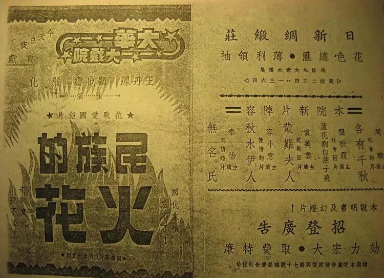 1941年,朱石麟导演作品《灵与肉》(一名《肉》)在上海光华大戏院上映时的海报