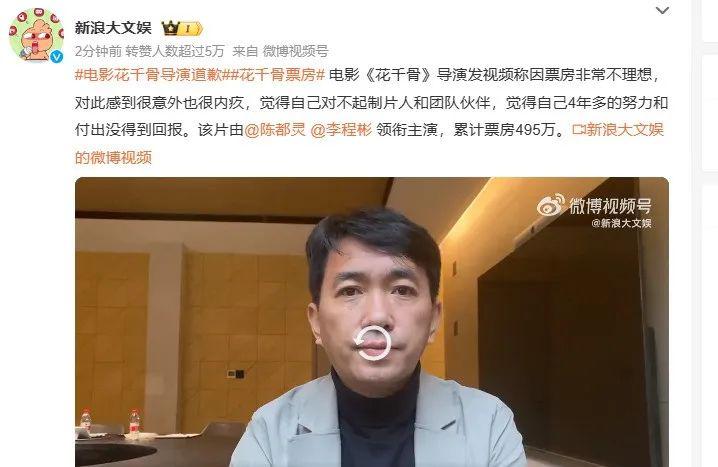 先是导演在上映的第二天发视频哽咽道歉,说,现在的票房(首日 300 万)对不起制片人对不起工作人员,四年的努力白费了。