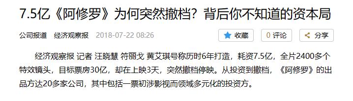 这让 Sir 想起 2018 年的那部超级巨片《阿修罗》来,因为票房不理想(3 天 4000 万),口碑也不理想(豆瓣 3.0),它毅然撤档了。