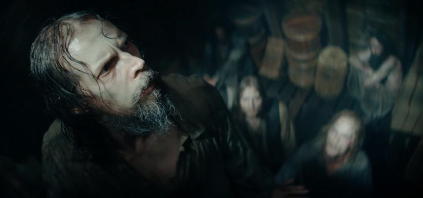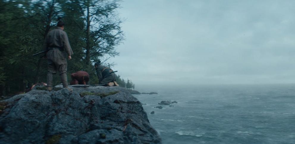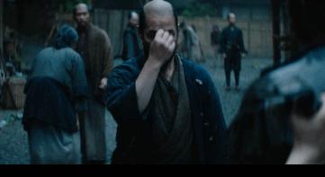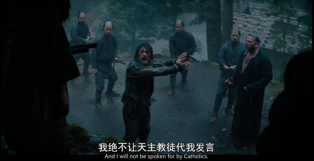 负责看着约翰的柏木(浅野忠信 饰)领主,准备攀下悬崖救人。