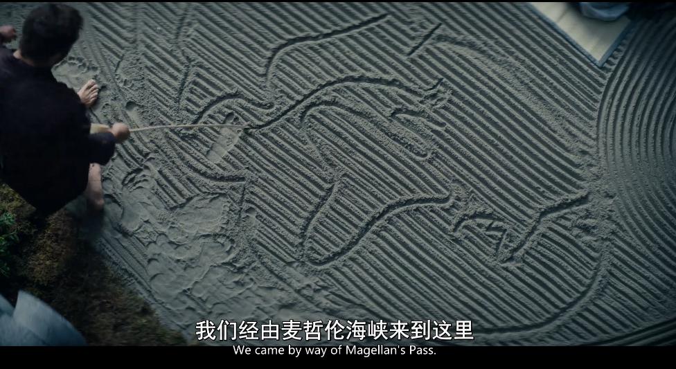 翻译的作用被隐去,约翰在枯山水的沙地上,开始绘画世界地图,吉井虎长才真正地第一次看清楚这个世界的模样。