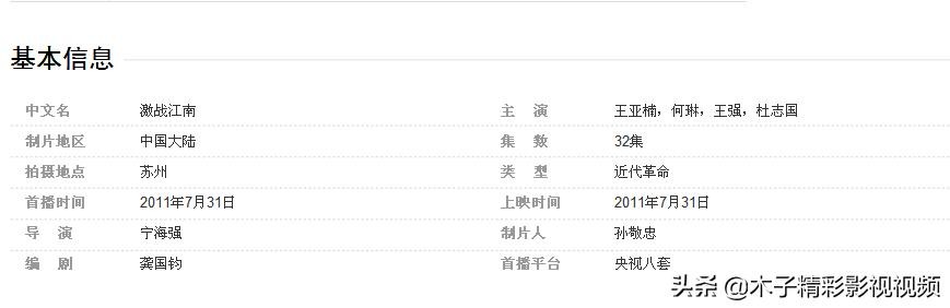 《激战江南》是由宁海强执导,王亚楠,何琳,王强,杜志国主演的近代革命电视剧。