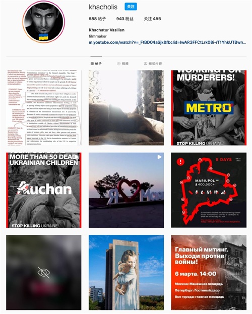 由于《我的小王子》定档5月,导演的IG账户一直在宣传电影,直到战争爆发后才画风突变——难民的出逃、平民的伤亡和反战呼吁成为了全部内容。