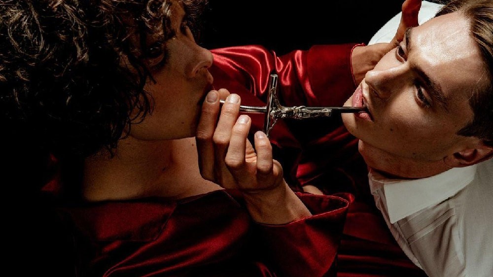去年圣诞前,主演们为电影拍摄了一组大尺度的宣传照。一丝不挂的青春胴体在镜头中散发黑白纯欲风,古典又情欲;而为数不多的几张有布遮挡的照片,还都穿着中世纪的修道袍。