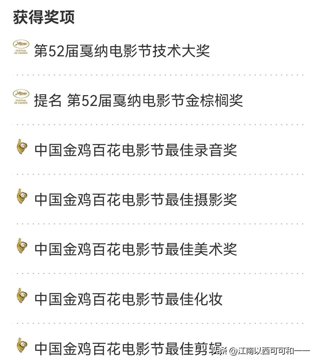 此外,这部电影还获得了美国金球奖最佳外语片奖、国际影评人联盟大奖等多项国际大奖,并且是唯一一部同时获得戛纳国际电影节金棕榈大奖、美国金球奖最佳外语片的华语电影。