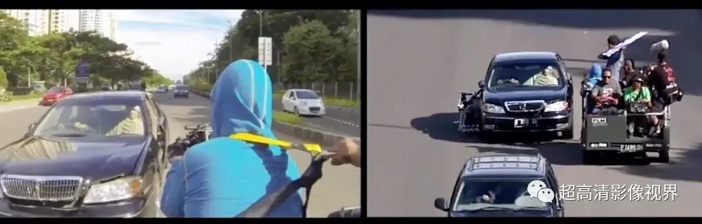 还记得《提取》吗?其中,经典的汽车追逐的场景是由一系列长镜头组合而成,技巧之一就是导演Hargrave 使用摄像机(RED Monstro)将汽车内外所拍摄的镜头拼接在一起,以保证最终动作画面的连续性。通过本文,现在我们可以了解到这种拍摄方法的灵感其实来自 《突袭 2》。请观看下面的截图: