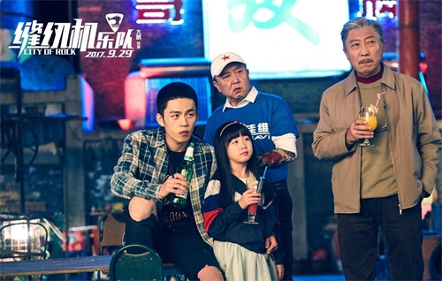 那位患有脑血栓的老中医爷爷穿着皮衣、带着墨镜,激动地狂吼,这让人感叹:摇滚精神永不消逝,青春永远长存。而在电影的最后一幕,乐队克服重重困难,在大吉他废墟下进行演唱。由最初没有听众,到后来大批人挥着旗帜冲进来狂欢,这样的表现确实有些夸张。但如果换个角度想,这其实也是我们经常望着窗外做的白日梦之一。缝纫机乐队的这场白日梦其实挺美好的,又何必戳破它呢?除了音乐和青春,电影中还涉及到了一些社会问题的探讨。