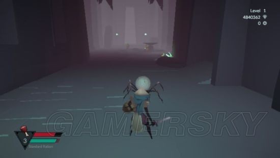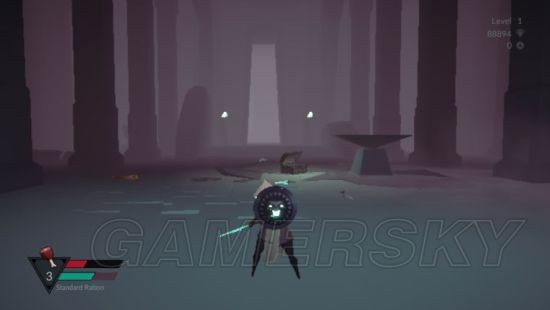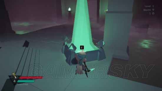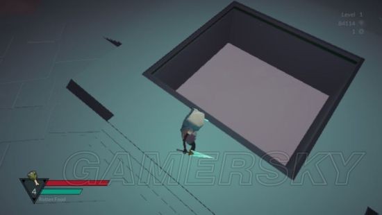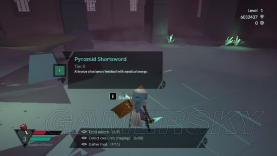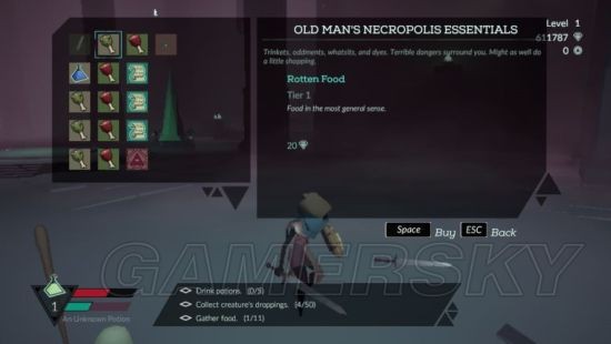 3、第一个场景的侧面,就是楼梯口附近,有一个商店NPC,靠近后按E可以进入商店购买物品,前期建议购买食物,因为游戏中恢复血量的手段不多;