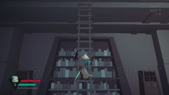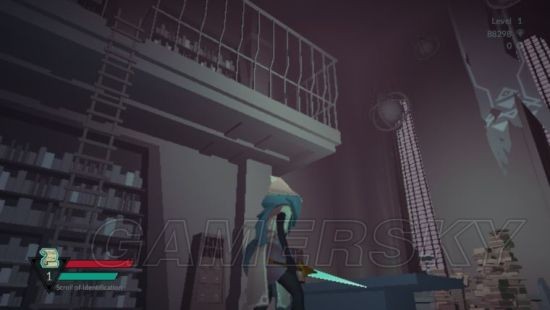 14、这里是图书馆,在游戏第三层,不知道是否是随机场景,右边有个书架可以学习技能,顺着梯子爬上去可以和商店NPC对话;