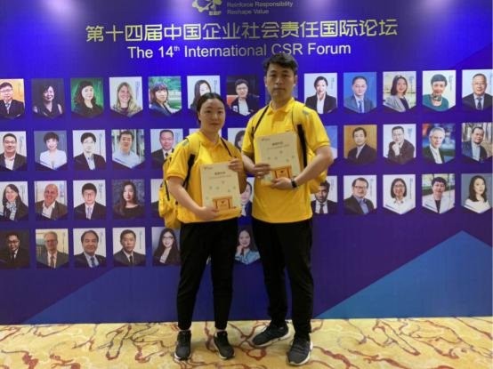 联合国全球契约中国网络执行秘书长韩斌和美团外卖社会责任委员会秘书长杨碧聪共同发布《美团外卖2018社会影响力报告》