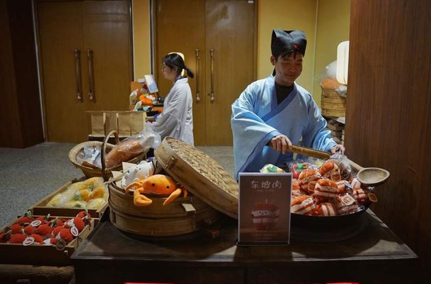 展览并未止步于此,一系列创意十足的苏轼主题文创产品也是亮点之一。比如那款名为“东坡肉富态可掬”的毛绒玩具,不仅外形憨态可掬,更巧妙地将苏轼的诗词与故事融入设计之中,成为了许多人心中的“萌宠”。