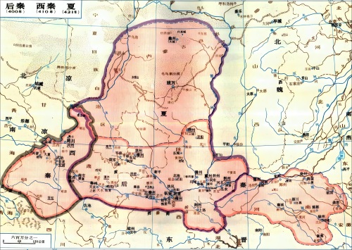西秦王乞伏乾归雄心勃勃,不久便对归附国后秦发起了战争。彼时的后秦正饱受战乱之苦,半年前,其境内的杏城(今陕西黄陵县西南)与安定(今甘肃泾川县)刚遭到胡夏的袭击。让我们先回顾一下胡夏与后秦之间的这场冲突。