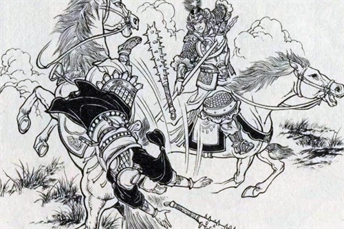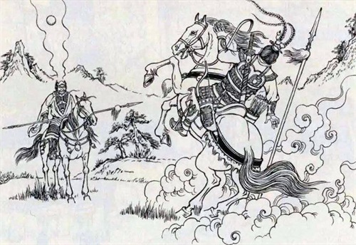 姜子牙金台拜将,出兵伐纣。姜子牙三路分兵,黄飞虎领兵去取青龙关,青龙关的守关主将是丘引。黄飞虎兵至青龙关,两军列阵,丘引银盔素铠,白马长枪,好不威风。黄天祥年方十七岁,纵马挺枪而出,青龙关中高贵摆斧接战。二人枪斧并举,厮杀在一处。黄天祥力大无穷,战了不到十五个回合,一枪挑高贵于马下。丘引大怒,摇枪直取黄天祥,黄天祥擎枪招架,二人战在一处。黄天祥枪法出奇,势不可挡,把丘引杀得只有招架之功,更无还手之力。丘引无法施展道术,心下急躁,被黄天祥一枪刺正中左腿。丘引拨马败走,黄天祥拉弓搭箭,一箭射中丘引的肩窝。