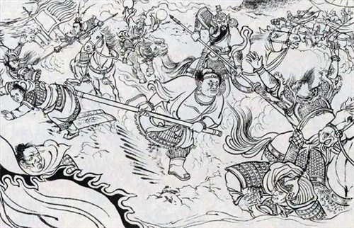 殷洪征伐西岐。黄飞虎和殷洪大战,黄飞虎枪法如风驰电掣,殷洪招架不住。庞弘上前助战,被黄天禄敌住。刘甫舞刀前来助战,又被黄天爵接住厮杀。苟章也冲上来助战,年方十四岁的黄天祥挺枪而出,大战苟章。苟章欺黄天祥年幼,大意了些,被黄天祥一枪刺中了左腿,败回大营。