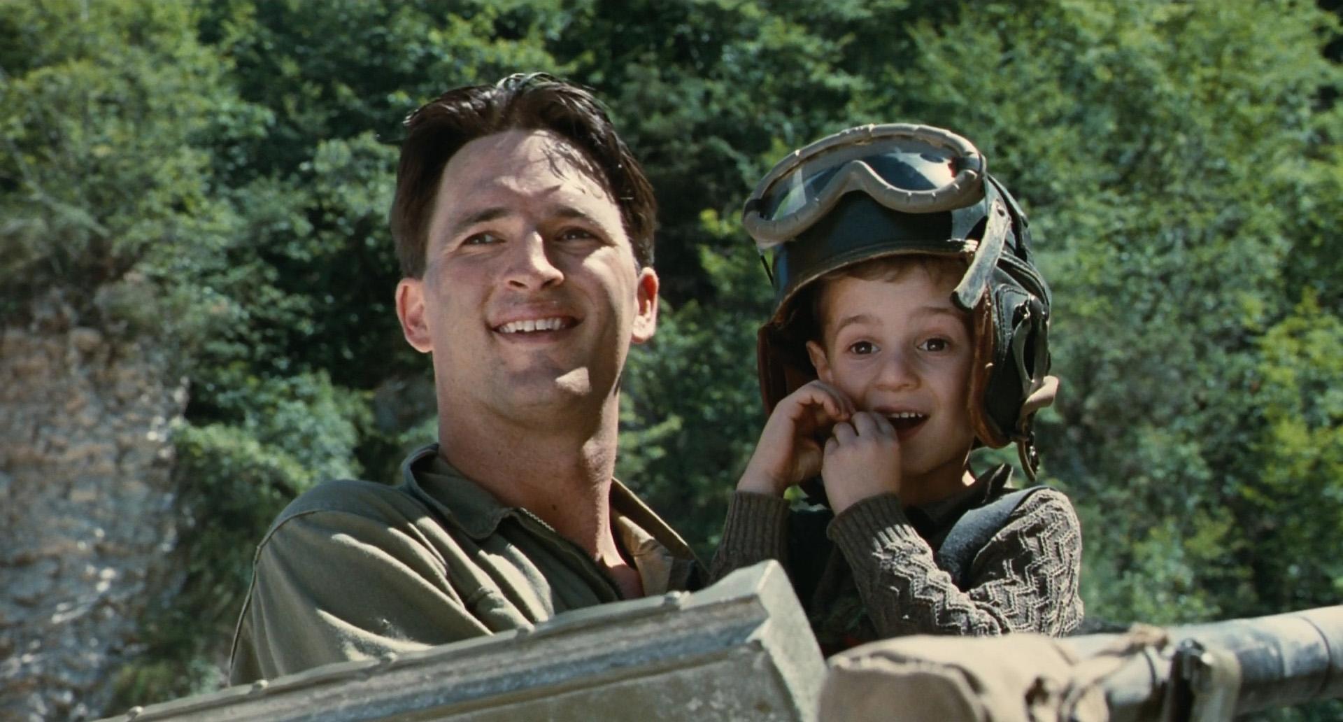 而且直到临死前,他都让儿子深信这是一个游戏,德军带走他的时候,他故意摆出夸张的动作,如此的演戏,目的就是让儿子深信不疑,这是一种伟大的父爱,是一种用语言无法表达的父爱,正式圭多的细心保护,儿子一直天真的以为这是一个游戏,电影最后,美军打过来的时候,约叔华还天真的冲上了美军的坦克,坐到坦克车里,脸上挂满了幸福的表情,在这个所谓的游戏过程中,他从未感受到来自现实世界的残酷,正是伟大的父爱才给了他一个完整的童年,让他在人间炼狱里免受伤害