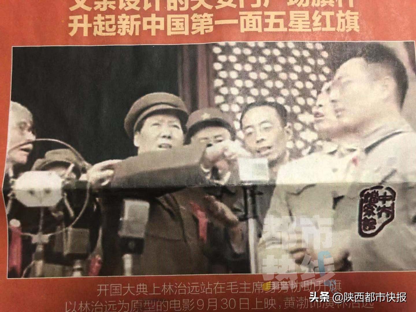 在开国大典影像档案中,毛主席亲手升起了新中国第一面五星红旗,旗杆就是林治远设计的。视频中,站在毛主席身侧为升旗保驾护航的那个戴眼镜的人就是林治远。