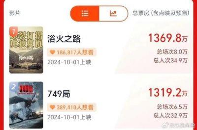 更值得关注的是,目前国庆档唯一的两部预售票房已成功破千万,尽管这个数字看似喜人,但深层次的竞争压力却让人不禁忧心。以《浴火之路》和《749局》为例,两部影片的主创团队、宣传力度以及影响力都非常强大,然而即便如此,排片率却依旧受到了严重的限制,并且一旦质量未达预期,这样的高预售也可能最终被更多的竞争对手淹没。