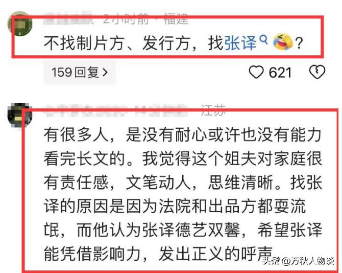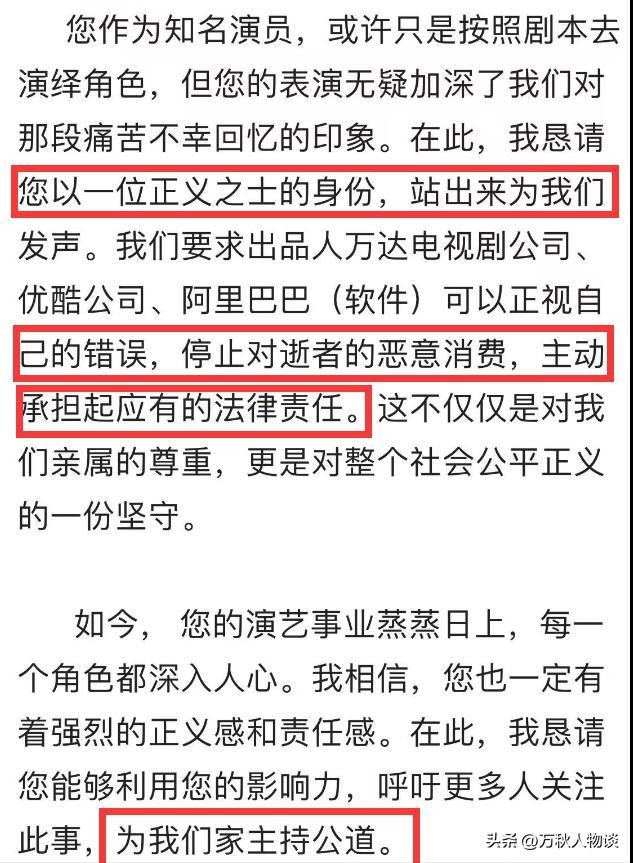 经过多次和剧组沟通均无果,于是家属便在网上写信喊话主角张译,希望他能够站出来帮自己发声。