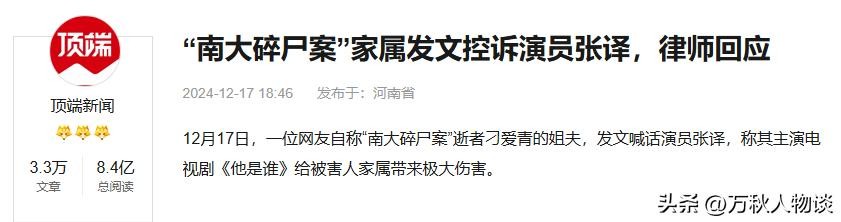 12月17日,网上一篇文章突然吸引了诸多网友的注意力,只因上面提及了影帝张译的名字,并且还指出其饰演主角的影视剧《他是谁》中涉及不公道行为。