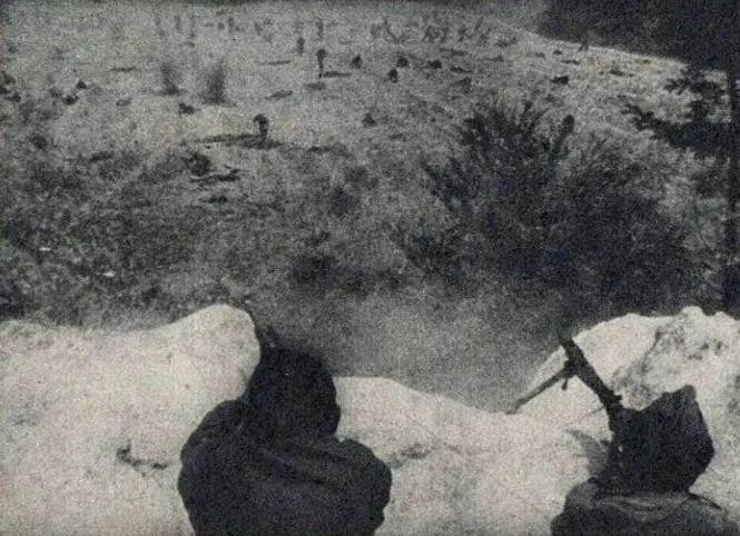 “再等一分钟,再不交出游击队员,就用机枪扫射你们!”