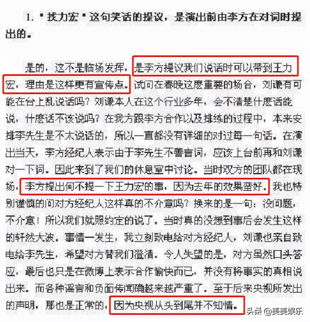春晚官博更是发声明撇清关系,表示刘谦调侃王力宏和李云迪的桥段并非导演组设计,而是刘谦本人的现场发挥。