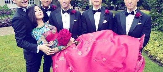 由胡歌,彭于晏,马天宇,刘浩然四位男神担当伴郎,被称为史上最帅伴郎团。