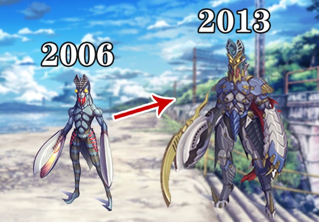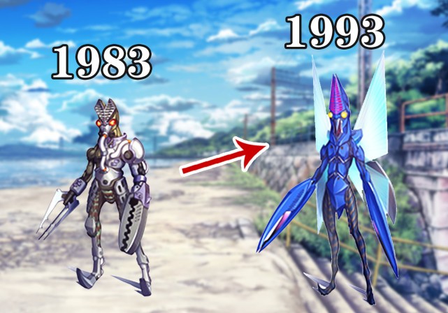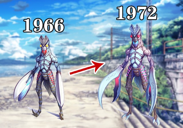 首先介绍的第一版巴尔坦星人,正是从1966年起的经典形象。虽然由于动漫呈现的关系,图中的巴尔坦星人与剧中存在些许差异。但是整体形象的还原程度,还是相当到位,依旧是粉丝记忆深处的样子。而且通过图示可知,六年后的巴尔塔星人,不仅身形发生了极为明显的变化,就连两个钳子的设计都进行了相应的改进,算是首次优化。