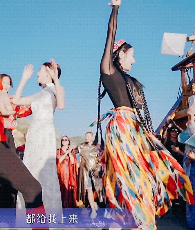 迪丽热巴跳起的新疆舞风情十足,舞姿轻盈、灵动动人。她的每一个动作都充满力量和激情,仿佛完全融入到音乐和舞蹈中。观众们被她的表演所吸引,掌声不断,现场气氛达到了高潮。