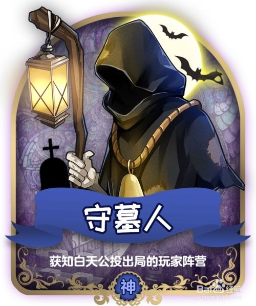 守墓人,属于好人阵营,每晚可知道前一天被公投出局的玩家是狼人阵营还是好人阵营,在夜晚环节获得这一提示,但是无法知道他的具体职位。守墓人的身份和预言家有点相似。预言家的技能是每晚可以查验一名玩家的身份是狼人还是好人,而守墓人的则是在玩家被公投出局后才可知道其阵营。守墓人的加入其实对狼人队伍来说,产生了很大的威胁。