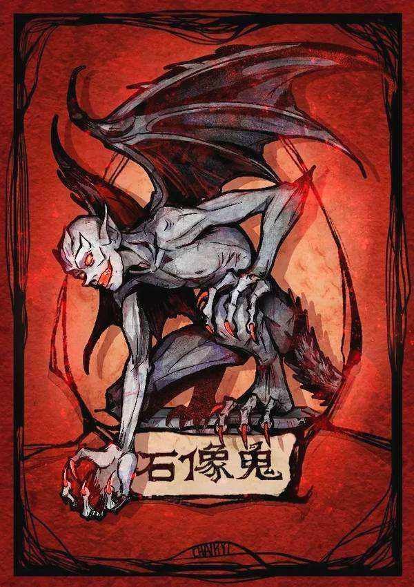 石像鬼,属于狼人阵营,每天夜里可以查看一名玩家的身份牌,不与狼队同时睁眼,与自己的狼队友互不相见无法刀人。当另外三个狼队友都死亡的时候,石像鬼就可以夜晚睁眼选择击杀对象了。虽然在狼人杀游戏中,预言家也拥有查验技能,但是石像鬼比预言家的技能更强。因为预言家查验结果为所属阵营,也就是说,仅知道玩家是“狼人”还是“好人”。而石像鬼可以直接确定一名玩家具体的身份牌,并且当自己的队友出局后,石像鬼拥有夜晚睁眼使某位玩家出局的强技能。