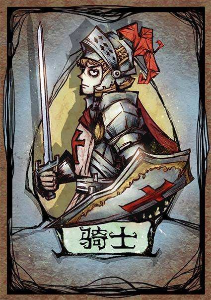 骑士:在白天放逐发言开始到投票阶段,可以选择除自己以外任意目标决斗,如果该角色是狼人,则该目标死亡,死亡的狼人无法发动任何技能。如果是好人,则骑士出局,发言阶段继续。骑士决斗导致狼美人死亡后,狼美人无法发动技能(即被连玩家不会殉情,目前只有这一个技能可以克制狼美人)。骑士牌可以说是猎人牌的加强版,如果说女巫在夜晚是最强神牌,那么骑士无疑就是白天的最强神牌了:拥有无与伦比的自证身份能力,翻牌后即使查杀狼人失败,也能发放一张比预言家金水还高的绝对好人身份(预言家有假,骑士绝对假不了)。而且骑士牌也绝对是狼人无论如何也无法悍跳穿衣服的牌。