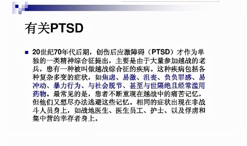 患者时常无可控制地回想起受害时的情景,每一次回想都会加深对他们的伤害。