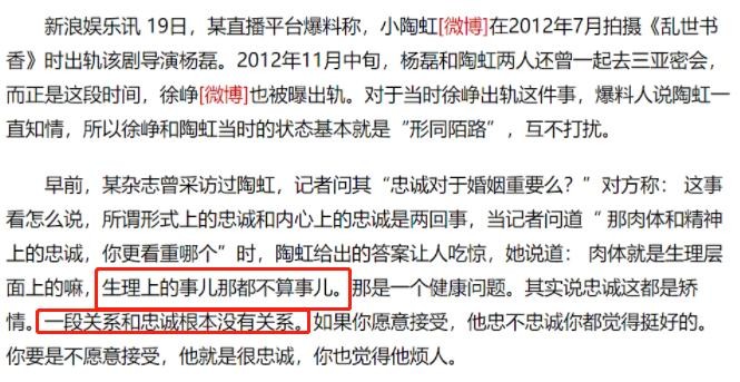 “肉体上的事儿就不叫事儿”,“一段关系和忠诚没有关系”。