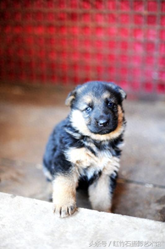 个人养过的狗里面最喜欢的还是德牧。也是世界十大名犬之一。当时养了三条。第一窝只生了三只,满月的时候我给他们拍了照片留念。第一次拍照小家伙们还是很严肃。中间是老大,右边是老二。左边最小是条母犬,胆子也很小。