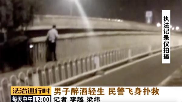 趁着这名男子不注意,民警杨铁兵飞身一跃将他救了回来。