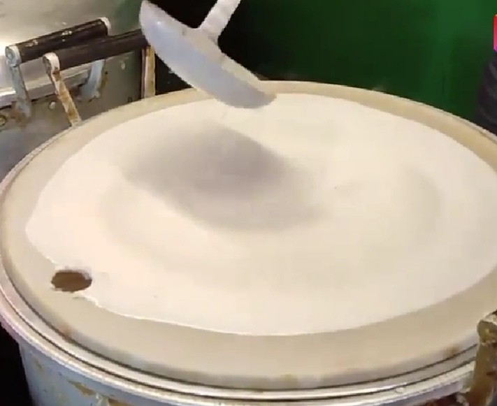 1、将现磨浓稠的米浆放进去摊成薄饼,蒸熟,挑出。