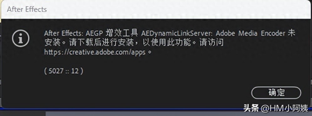 需要注意的是我们需要安装Adobe Media Encoder,否则会出现这样的提示: