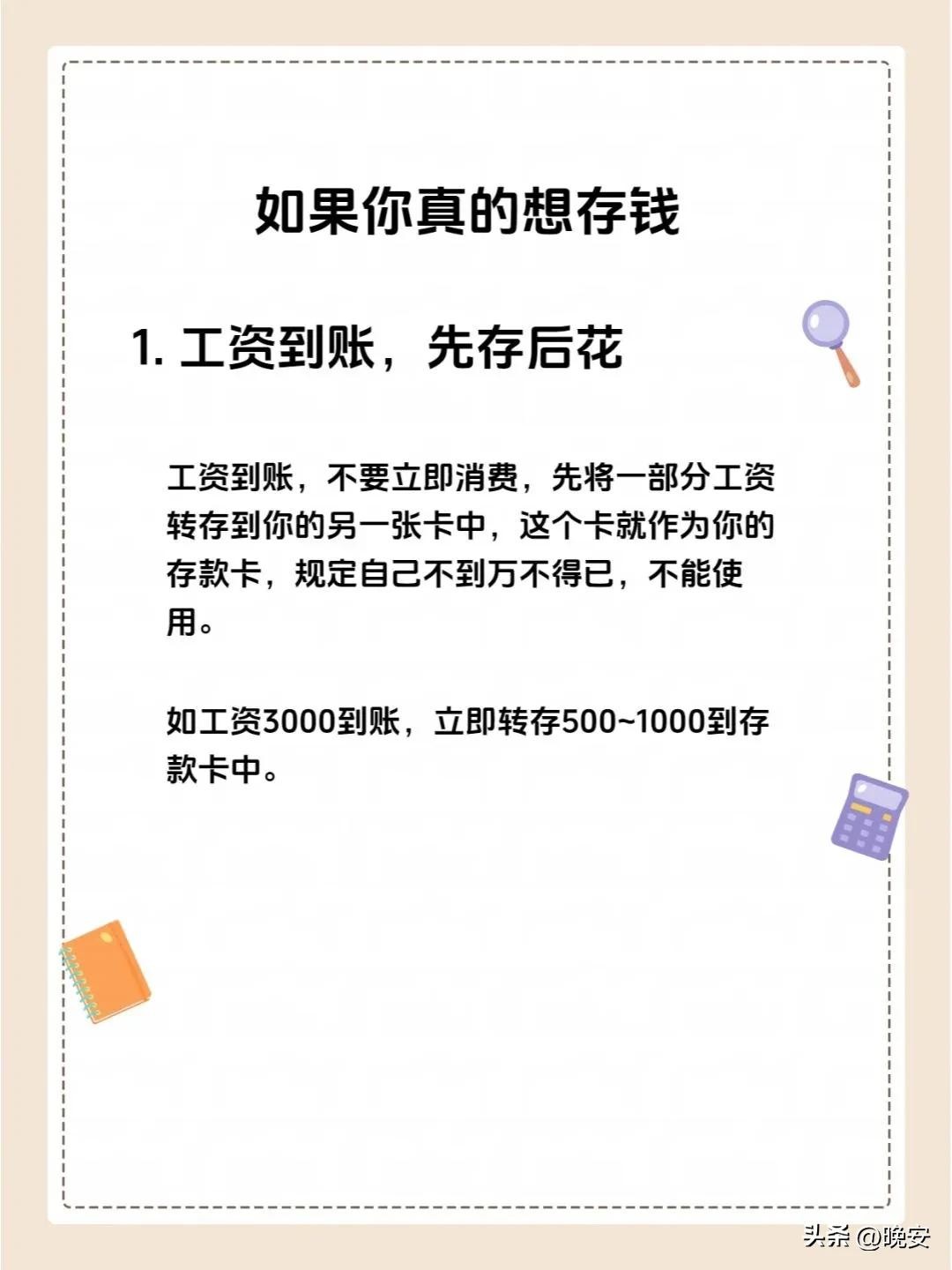 18个存钱小技巧,建议收藏学习! 2025-10-26 01:53 点击: 来源:皮坤网 摘要:18个存钱小技巧,建议收藏学习! 18个存钱小技巧,建议收藏学习! 相关标签: 上一篇:作为书法爱好者,你认为写狂草怎样才能写出狂态? 下一篇:鸿运当头,财源滚滚来招财头像