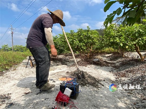 傍晚时分,高明皂幕山下,村民区叔带齐“家伙”来到靠近花生地的田垄上,挖开一个三十分公深、二十几公分直径的圆坑后,放进一个漏斗套着的胶盆,然后铲平坑口的杂草,把铁锹插在旁边,挂上一盏发红光的灯和一个通上电发出“喳喳声”的“大声公”,就可以回家了。
