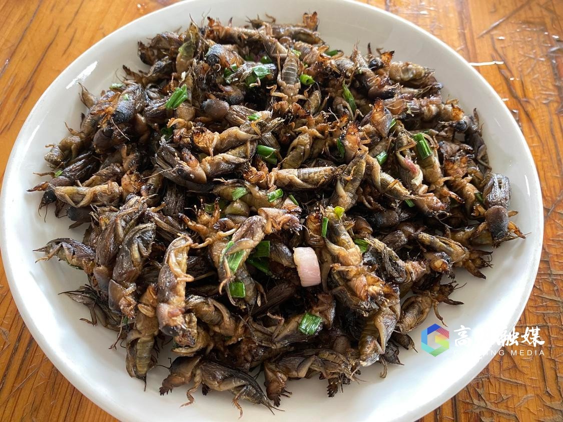 来自南海的阿佩带着闺蜜们专程来到皂幕山下找美食,她是老熟客了,油炸“土狗”是必点的菜。她说:“第一次吃时有点怕,吃多次,就总想着这个味道。秋日里到高明乡间觅食,试试田间地头的昆虫美味,香脆可口,正!”
