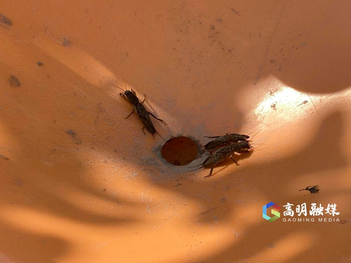 “农民都知道土狗是害虫,专吃农作物的根,我用声音诱捕,引它过来。它们白天躲在泥里,只有晚上才会出来活动,它们会顺着灯光和播出的求偶叫声飞来,跌落大漏斗,再掉进只进不出的胶盆里,次日天一亮的时候,我就来收网。”区叔介绍,这种利用昆虫的趋光性和求偶声来诱捕的方法,比以前用锄头挖,跟着犁爬捉,容易得多。“土狗”会游水,开耕在犁水田的时候,就会纷纷钻出来,这时它翅湿了,飞不起来,特别容易捉获。