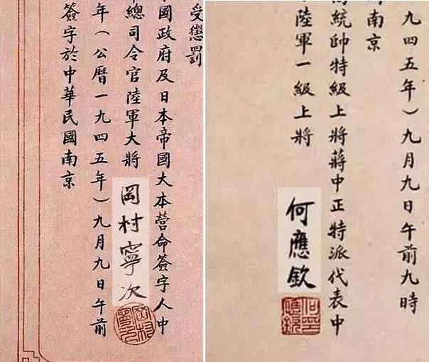 《日本投降书》上冈村宁次签名胜过何应钦?