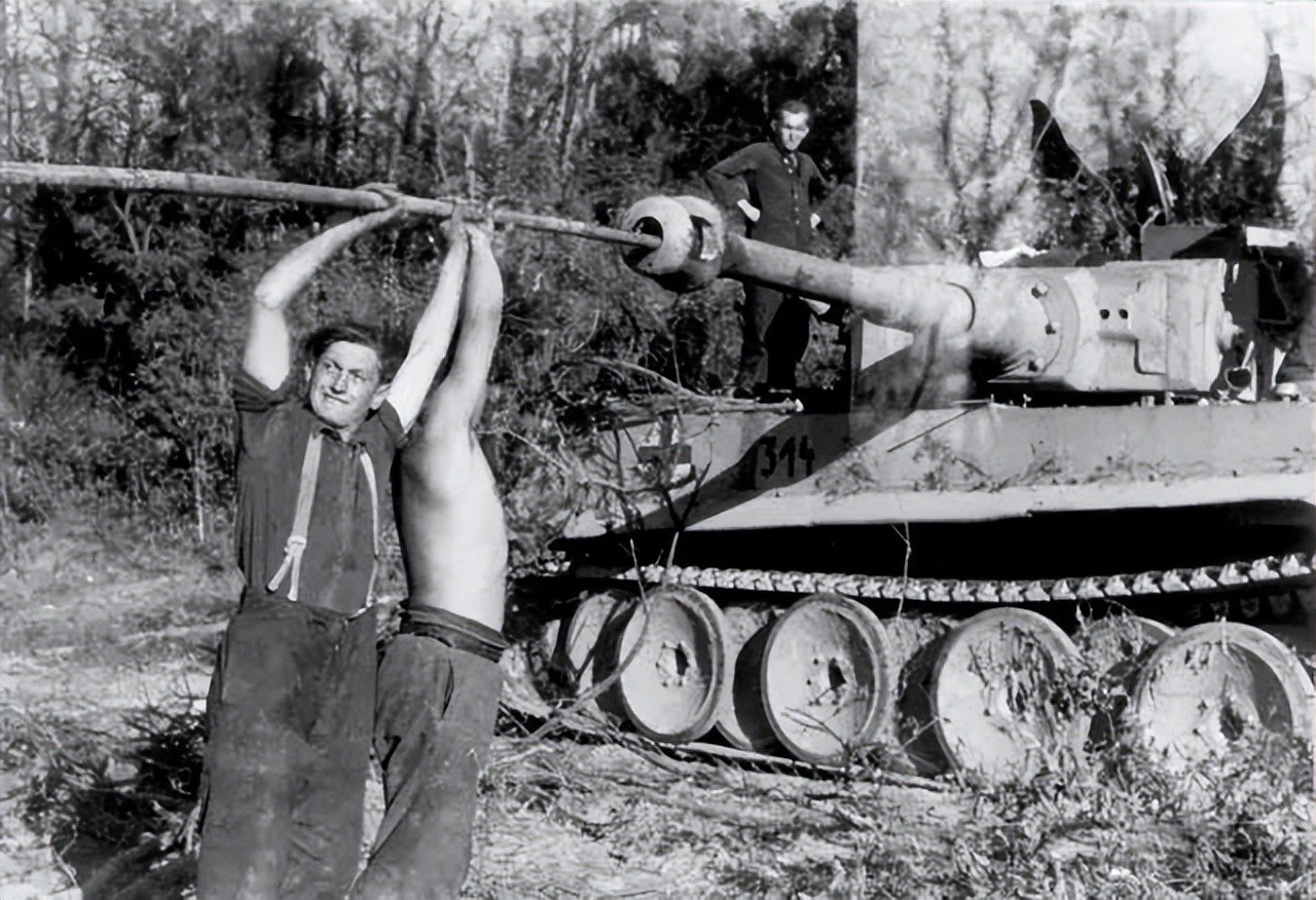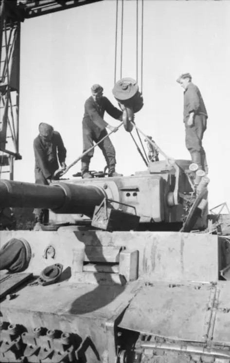 1943年俄罗斯,德军维修人员正在对一辆虎式坦克进行维修。