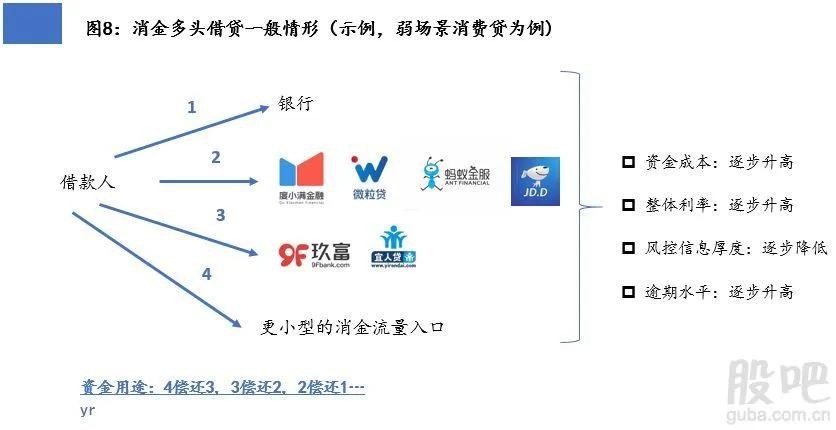 这可能涉及“多头借贷”了,所谓“多头借贷”,就是指:借款人在A银行贷款,该还款时从B银行贷款,还A银行的贷款,再从C银行贷款,还AB银行的钱。
