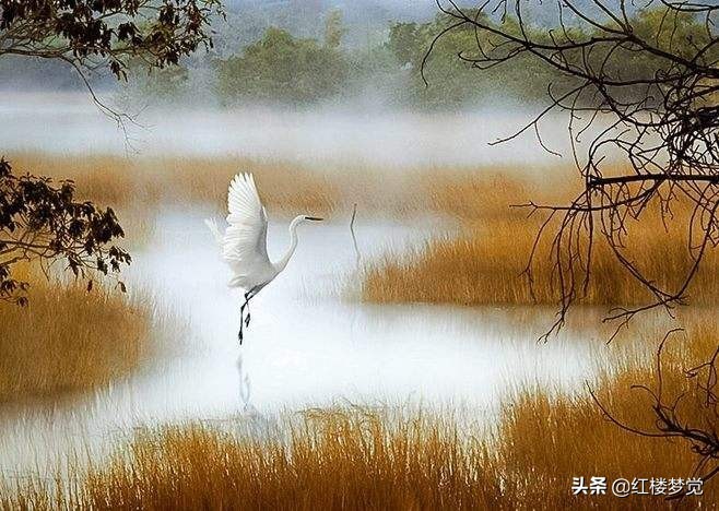 《忆桂》诗还写到了秋鹤。鹤是一种迁徙性动物,秋天要到南方来过冬。而大观园里秋天也有鹤,令人印象最深的就是,在《红楼梦》第七十六回中,湘云与黛玉在中秋节联诗,当湘云看到一只白鹤从池中飞起时,立即联出一句“寒塘渡鹤影”。这只白鹤就是秋天之鹤。