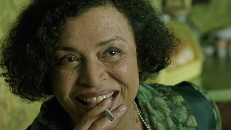 格洛丽亚饰演的先知是矩阵中的一位重要程序,尽管在现实中她被描绘为一位普通的老太太,但在虚拟世界中,她的角色充满了神秘感和深度。她具有预知未来的能力和探测人类情感,被定位为矩阵创世神。