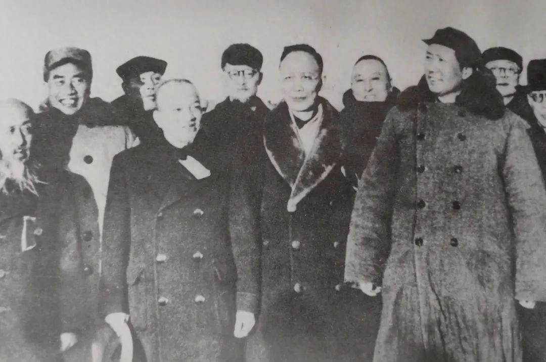 1949年3月25日,毛泽东在西苑机场与各民主党派和无党派人士在一起。