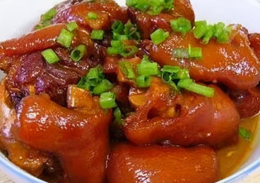食材:猪脚1只姜片4-5片、八角2个桂皮一块、料酒适量生抽适量、老抽适量、冰糖一小块油少许