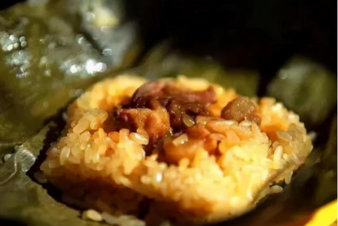 6、将两张荷叶表面相对,先铺一层饭,放入适量馅料,再压上一层糯米饭,用荷叶包紧,放入蒸笼蒸约30分钟即可。